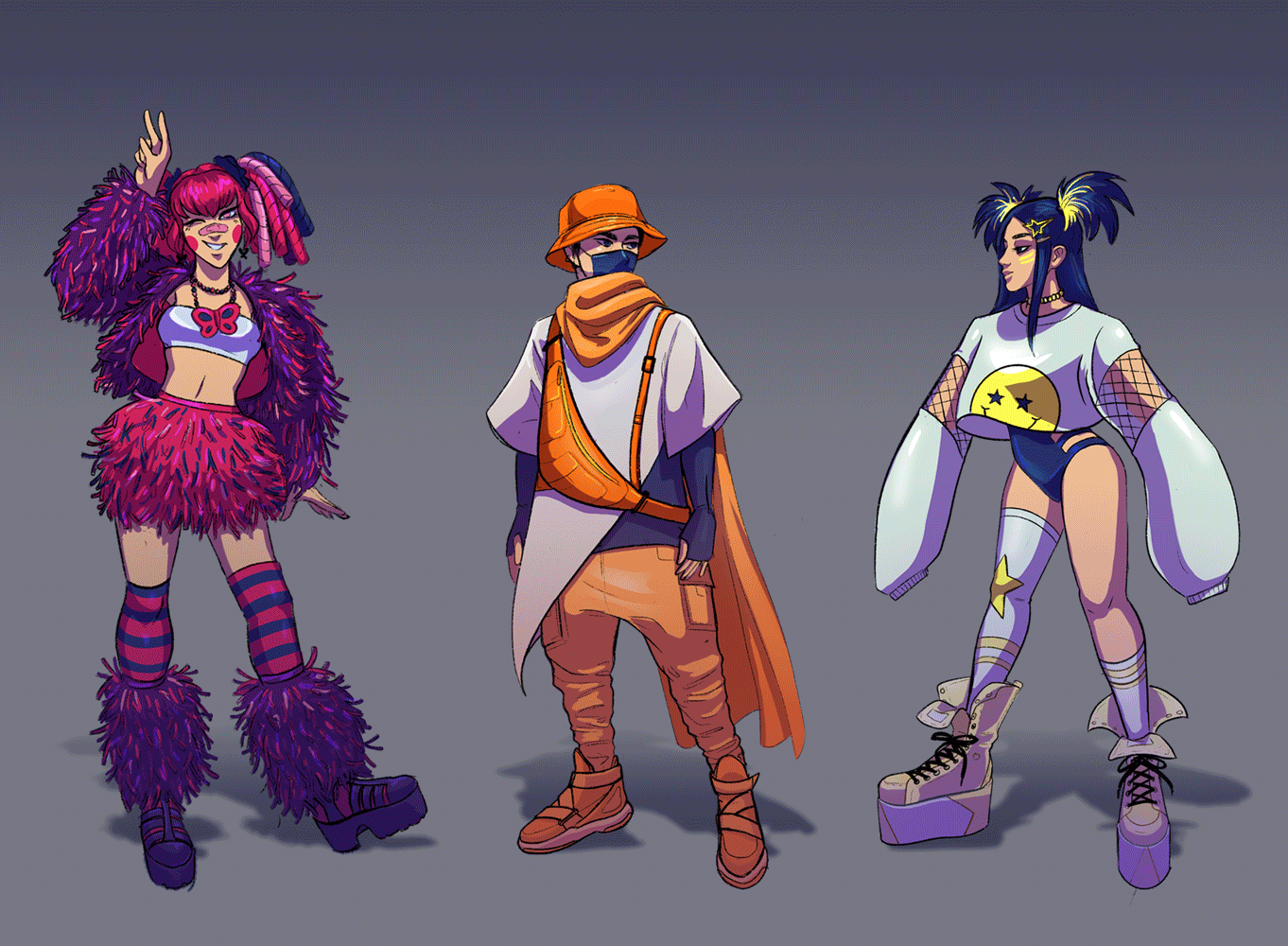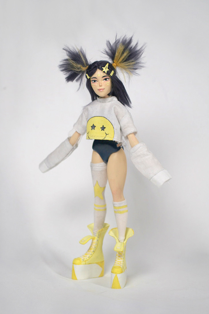For my senior thesis I wanted to create a fashion doll line of magical girl/superhero type characters inspired by EDM music. I thought the magical girl trope would translate well into a fashion dolls. As their double life makes for multiple outfit changes! I also felt like it was a good opportunity to develop my character design skills, while also allowing me to grow my graphic design sensibility, explore packaging design, get some experience with product design and finally teach myself 3D modeling.