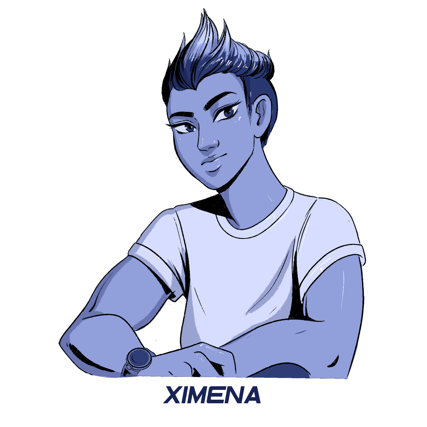Ximena may have a tough exterior but she has a soft spot for pretty girls. She is from Mexico and her powers are super strength. Dubstep is the muscle of the group, so I wanted to make her lower half heavy like the music. Artist's music that inspired her are Zomboy and Skrillex.