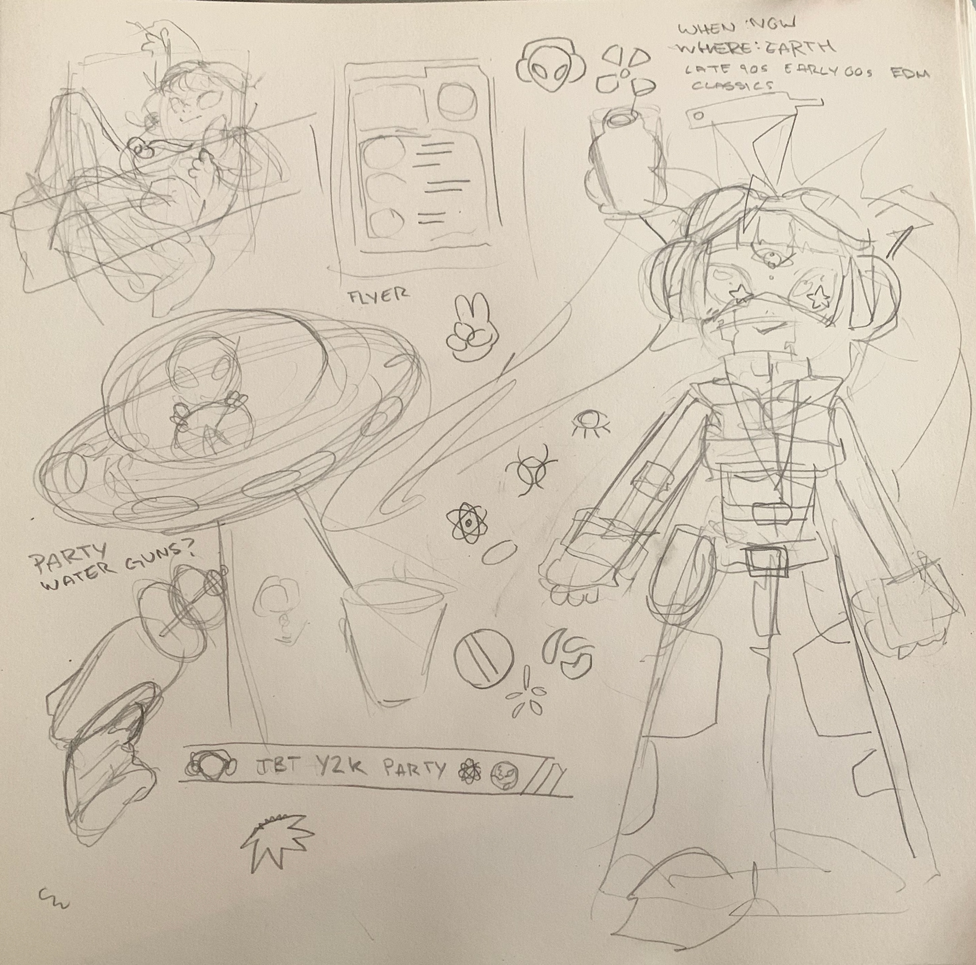 I wanted to create a mascot to go along with the event who embodied 90's and 00's cyber fashion.