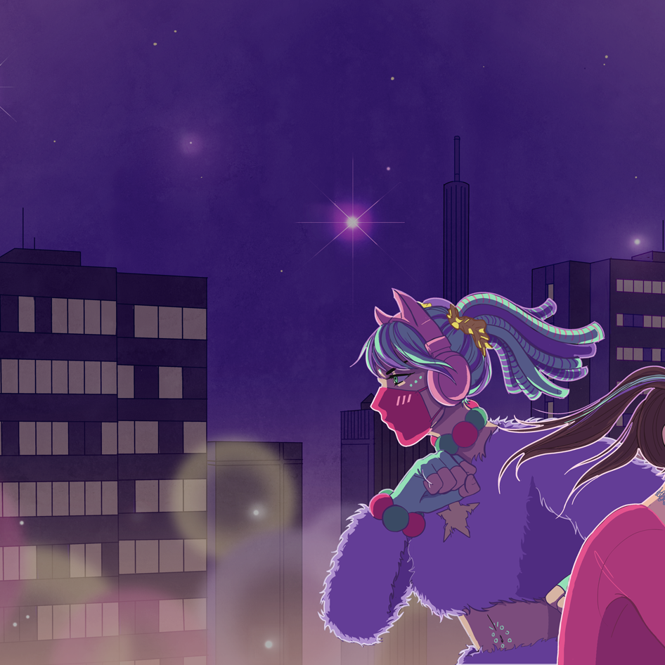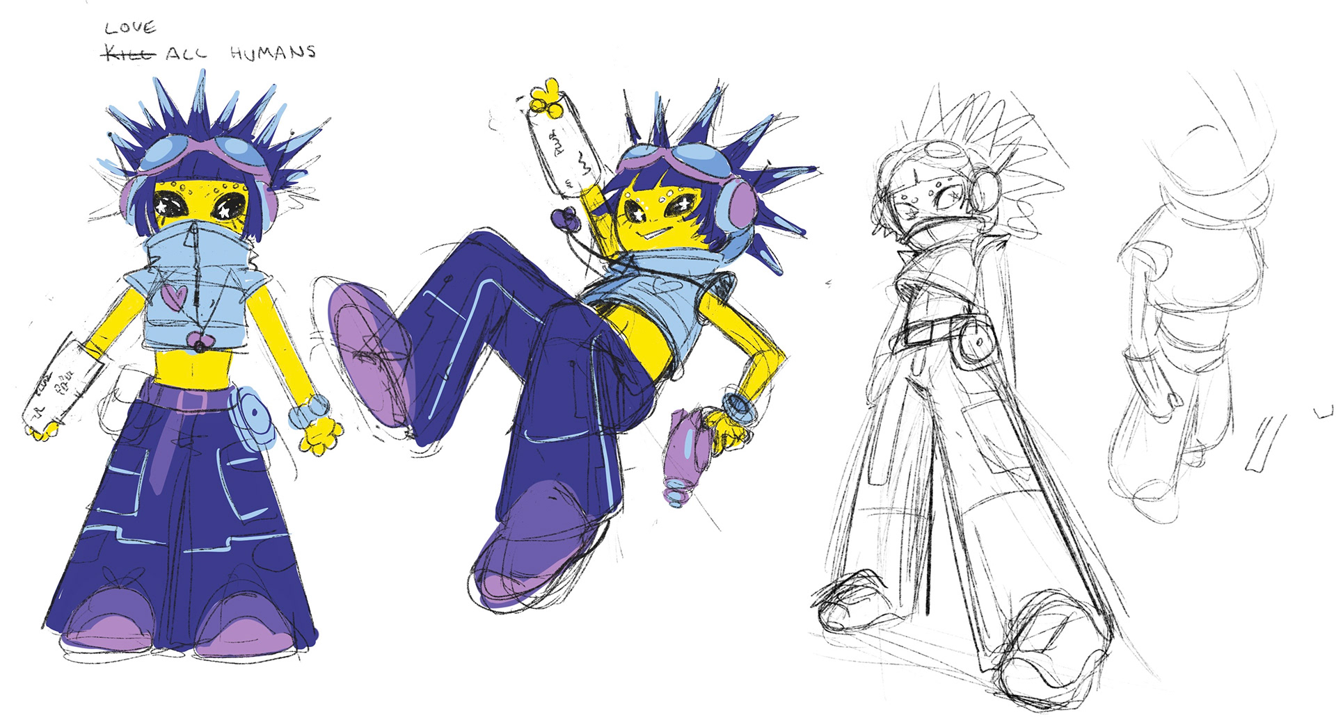 I wanted to create a mascot to go along with the event who embodied 90's and 00's cyber fashion.