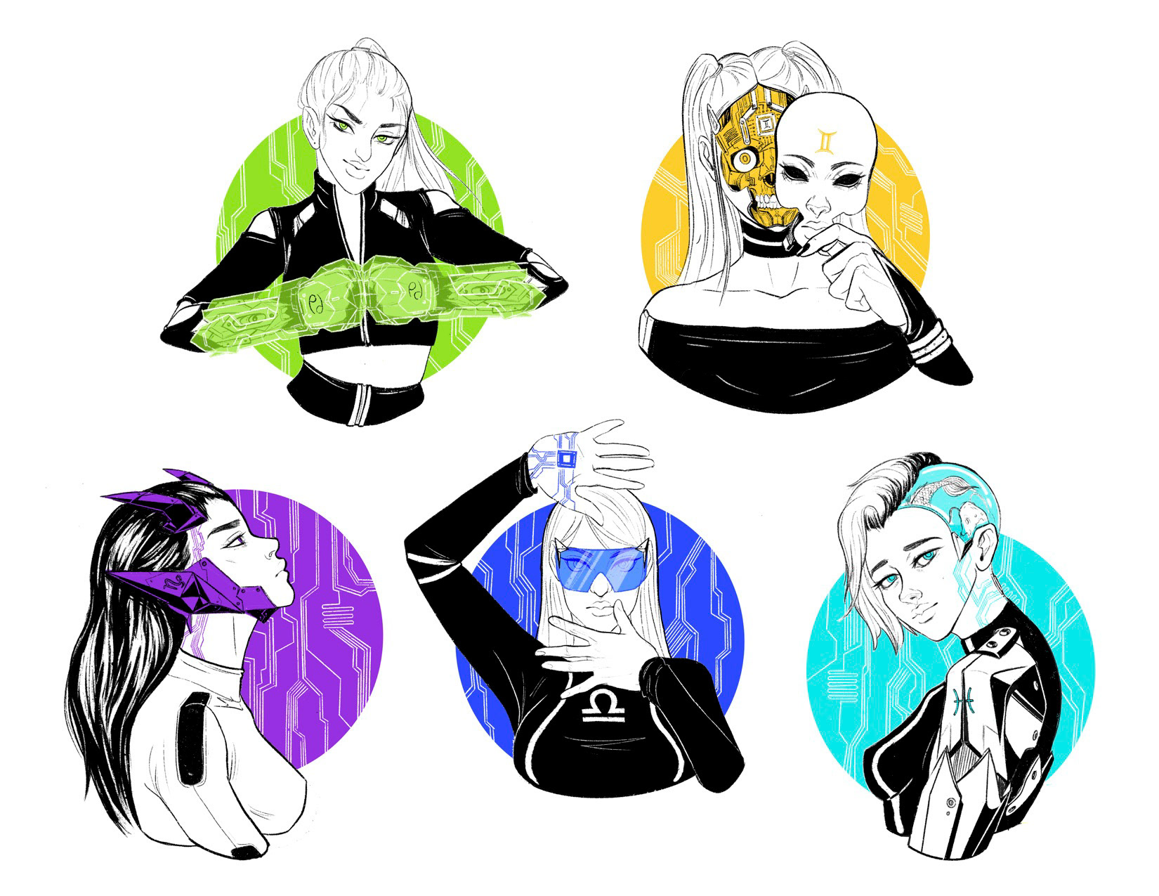 Half page and five spots inspired by the zodiac. I drew inspiration from sports and biker wear but wanted to add futuristic and cyber punk elements. For this project I challenged myself to use a limited pallet and create something more graphic. The Leo illustration was featured in the student Society of Illustrators 2020 show