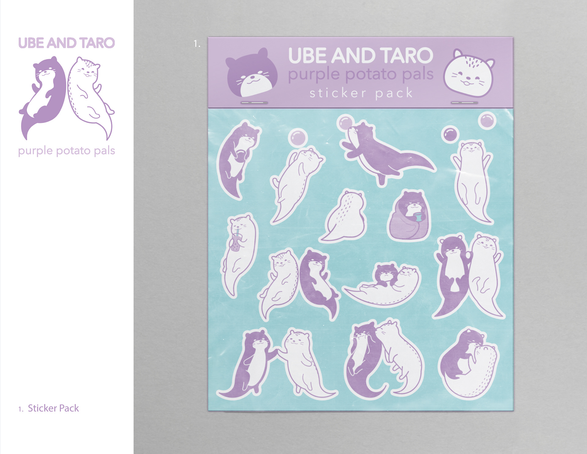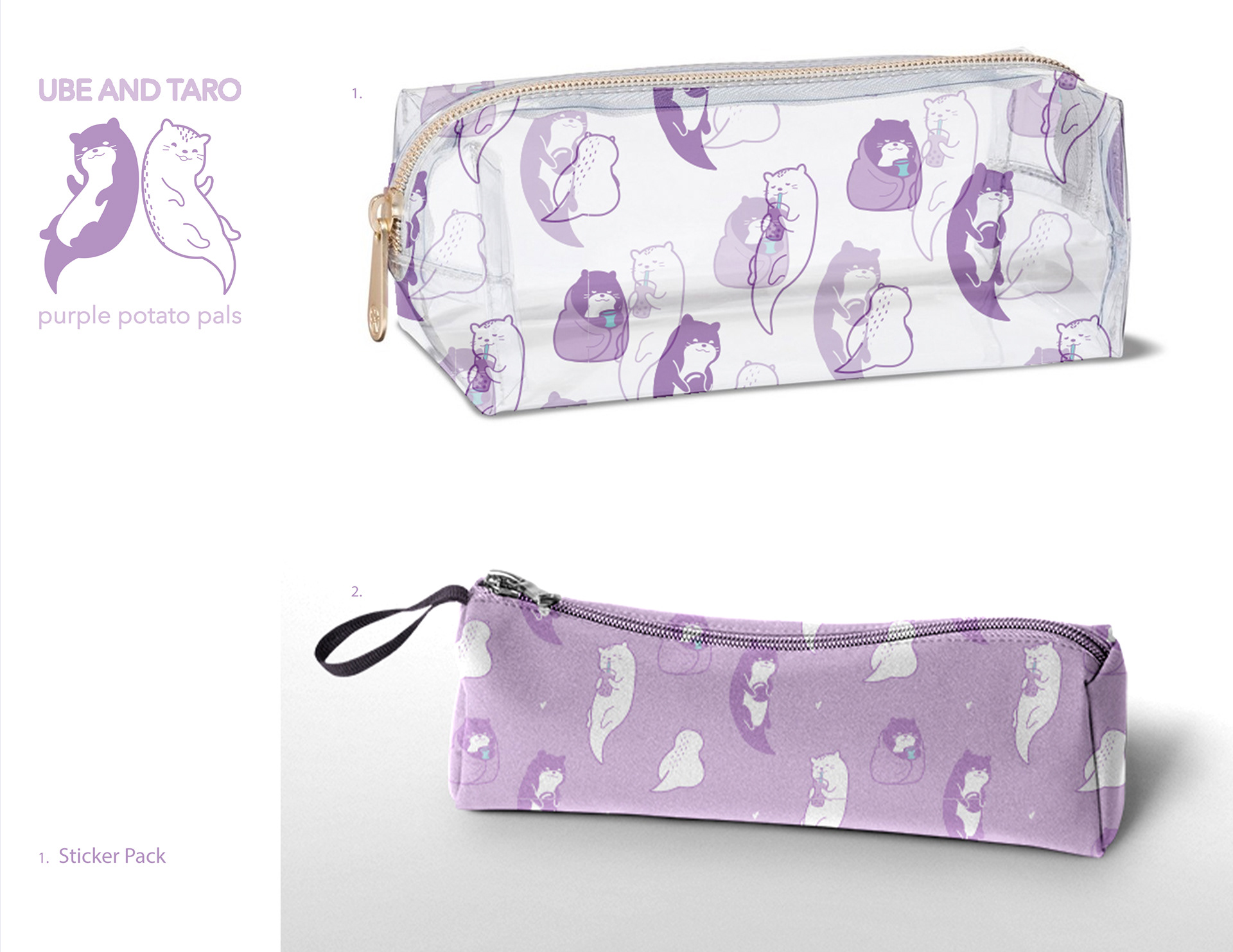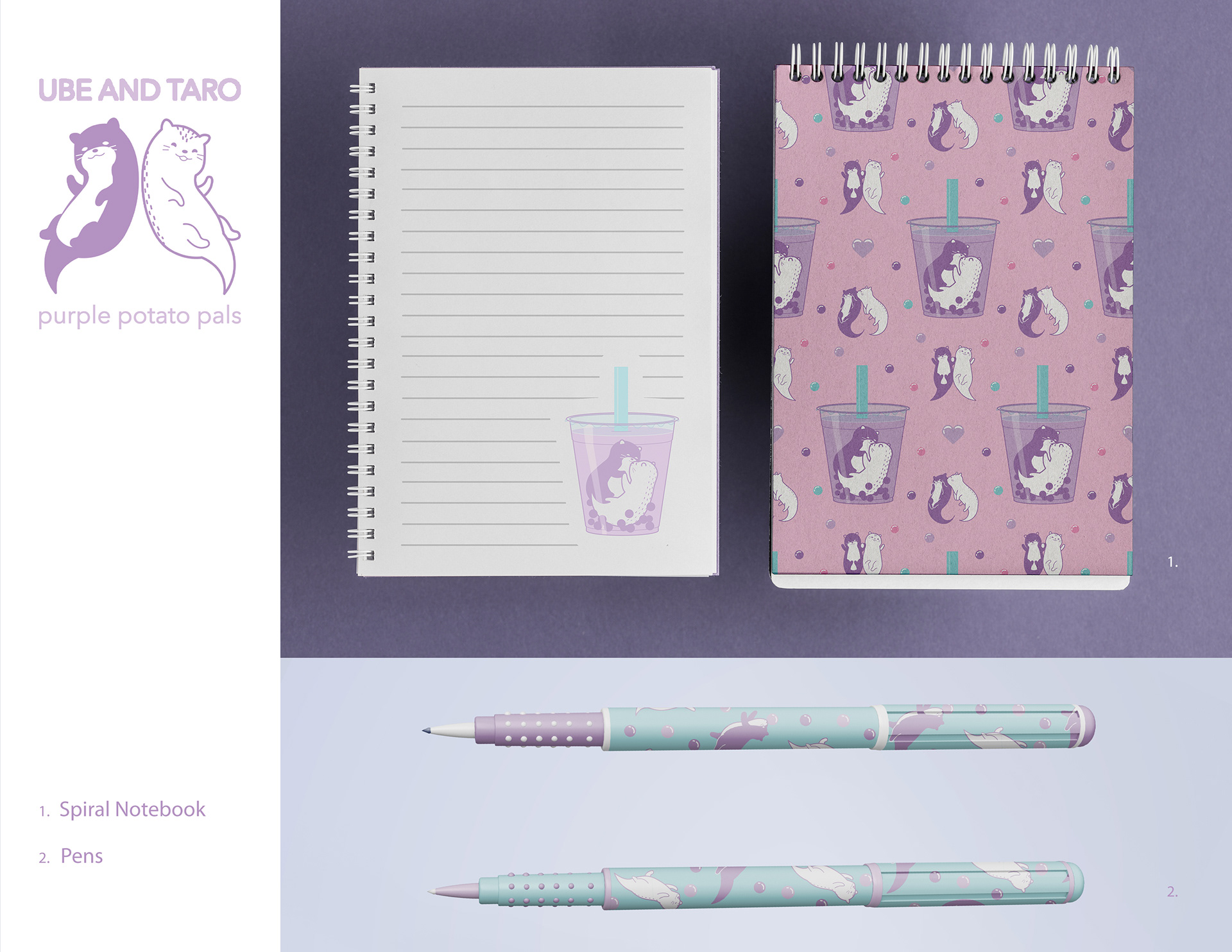 Ube and Taro are sleepy otters who love each other and boba very much. Inspired by my favorite flavor of boba tea, I had wanted to make stationary mascots based on purple potatoes!